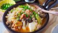 - 鍋に水と鶏ガラスープの素を入れ、沸騰させる。